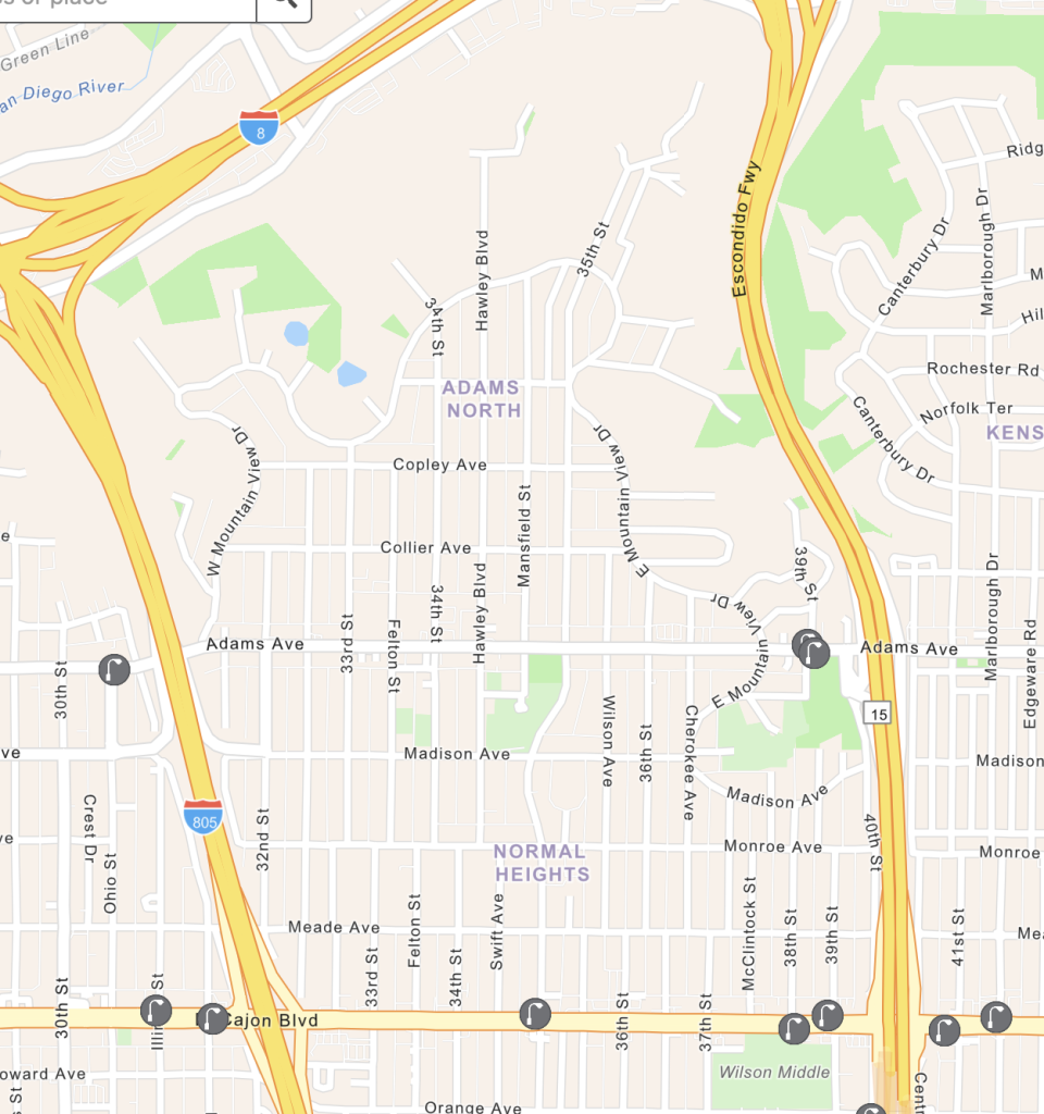Normal Heights Community is bounded by El Cajon Blvd. on the south, by SR 15 on the east, by SR 805 on the west, and by the Mission slopes on the north.